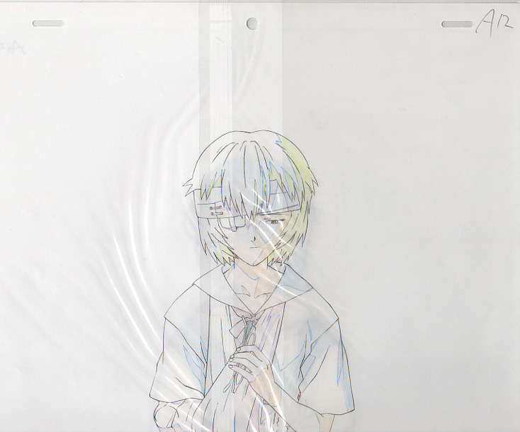 第拾八話「命の選択を」 (作監;黄瀬和哉)Aパートより 委員長こと洞木ヒカリ アスカとベンチで会話のシーン。 背景はコピーではありませんが, 同シーン内,アスカのカットに 使用されたモノのようです。(^_^;) 大オークション大会にて落札。 |