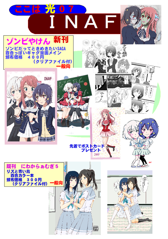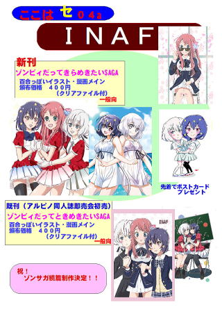 サークル「INAF」 光07 にて、ゾンビランドサガの同人誌を頒布しております。