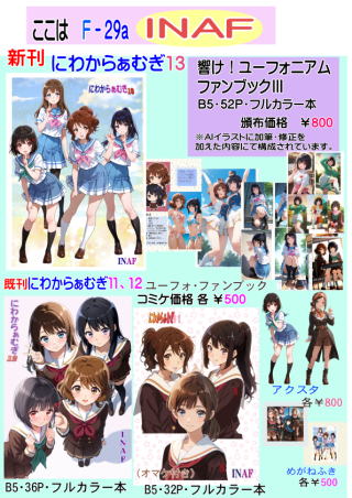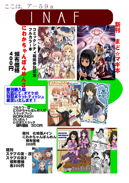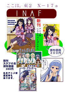 コミケ3日目 12月31日(木) 東2ホール X−17a サークル名「INAF(イナッフ)」