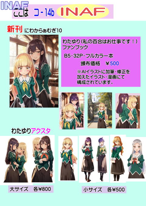 コミケ二日目 西1ホール ゆ−25b 「INAF」です。
