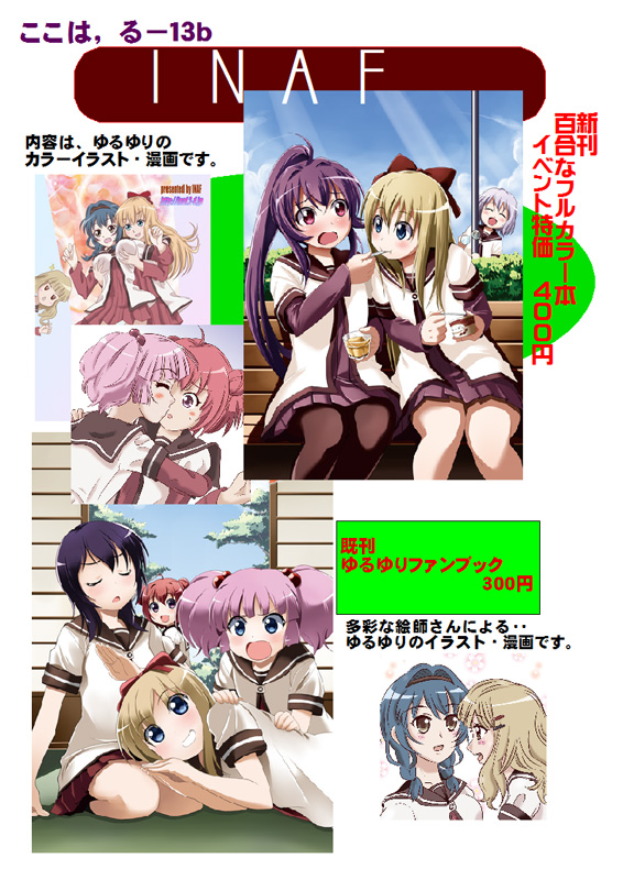 今回は、数名のゲスト絵師さんを迎えて、ゆるゆりフルカラー本(全年齢向け)B5版24Pを発行します。