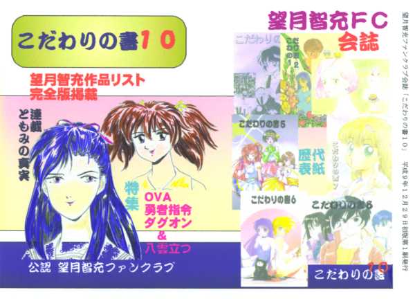 A5・オフセット・表紙フルカラー・60P| 01 表紙・イラスト 後藤真砂子 03 扉絵・イラスト おおもりよしはる 04 巻頭言、目次 05〜30 プリンセスナイン 第8話「野球部の運命をかけて」に関する 望月FC的おせっかいな解説 大場打太 31 次回マンガ予告 電柱香 32,33 アニメスクランブル公開録音 イベントレポート Shunichi 34,35 見たいぞ、こんなシチュエーション 般若原美津太 36 OVA『水晶の瞳の少年』に関しまして… 編集部 37 イラスト&メッセージ『勇者指令ダグオン』 小林ゆうき 38,39 勇者指令ダグオンについて OVA編2 黒井祥 40,41 イラスト『勇者指令ダグオン』 姫野ゆう 42 イラスト『勇者指令ダグオン』 のりただ・ぐら 43〜45 会長は深夜、ビデオと共に センチメンタルジャーニー第3話に・・・ MAX 46,47 雑想転々穴埋め草 般若原美津太 48,50 連載第十回 ともみの真実 -自戒の念をこめて- 田中功 51,56 マミからララへ〜 15年目の魔法少女は、どこへ行くのか かっきい 57 編集後記&奥付け 編集部 58 イラスト 水三人 60 裏表紙 後藤真砂子 |
